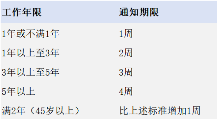 此外,企业必须在解雇员工之前提前通知员工,通知期限取决于员工的服务年期。