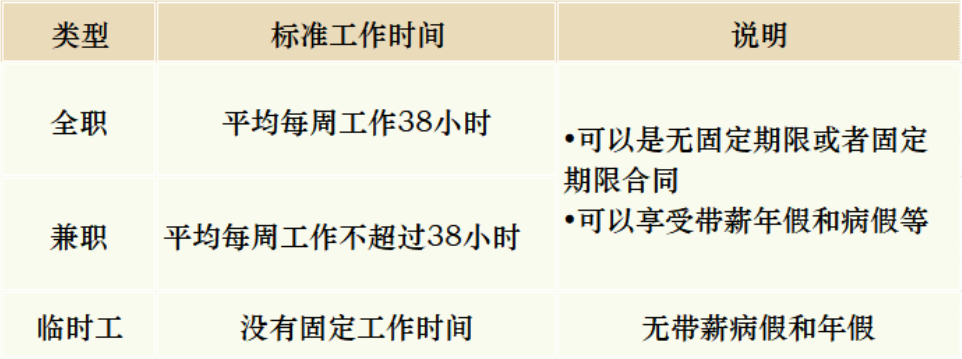 1、年假:全职员工每年有权享受至少4周的年假,兼职员工有权根据工作小时数按比例享受年假。